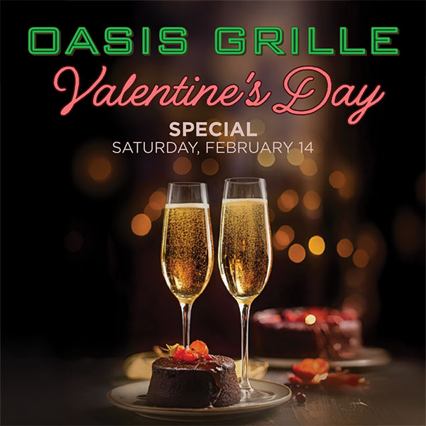 Hungry? Oasis Grille has you covered with everything from breakfast favorites to mouthwatering burgers, fresh salads, and cheesy pizzas. Pair your meal with one of our signature cocktails for the perfect dining experience.